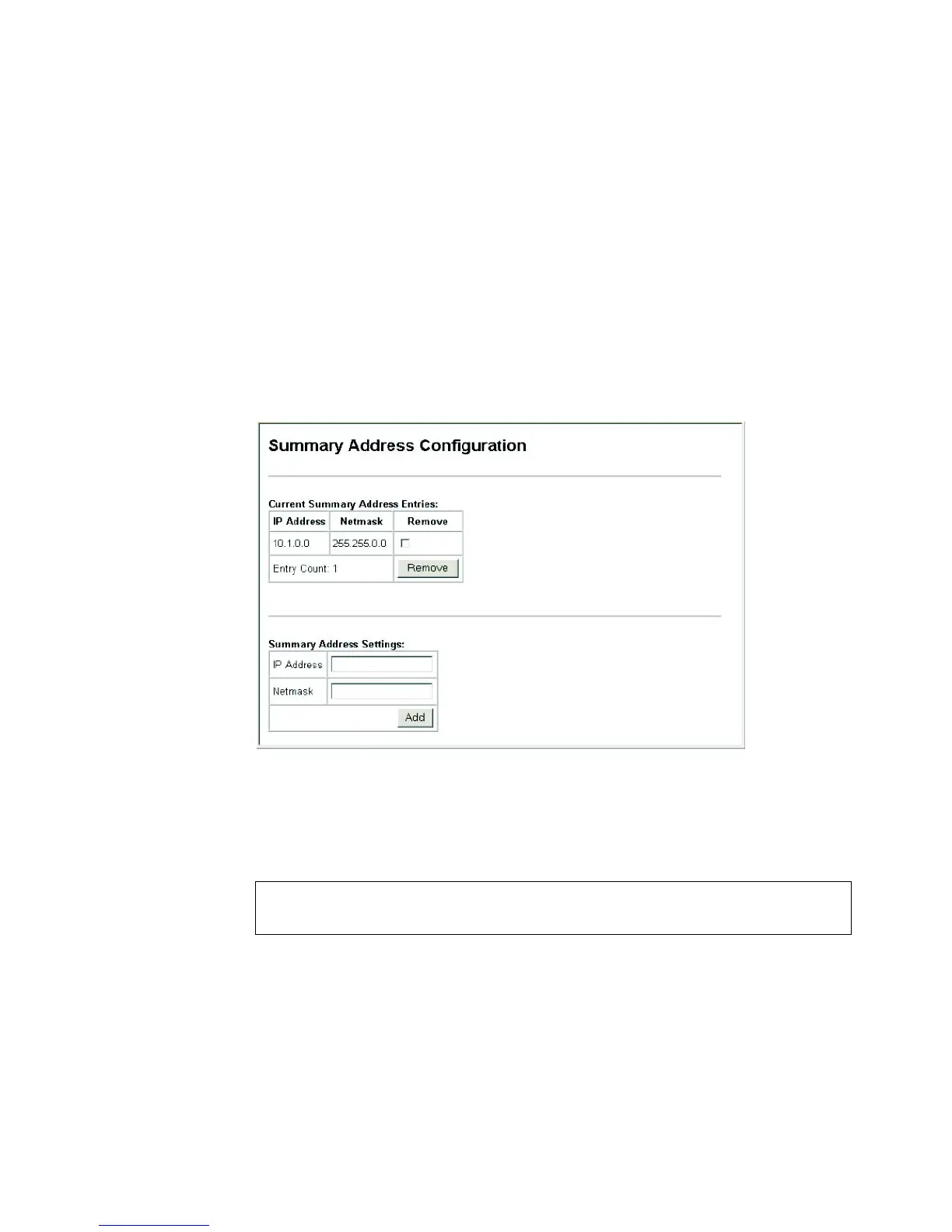 Figure 207 OSPF Summary Address Configuration