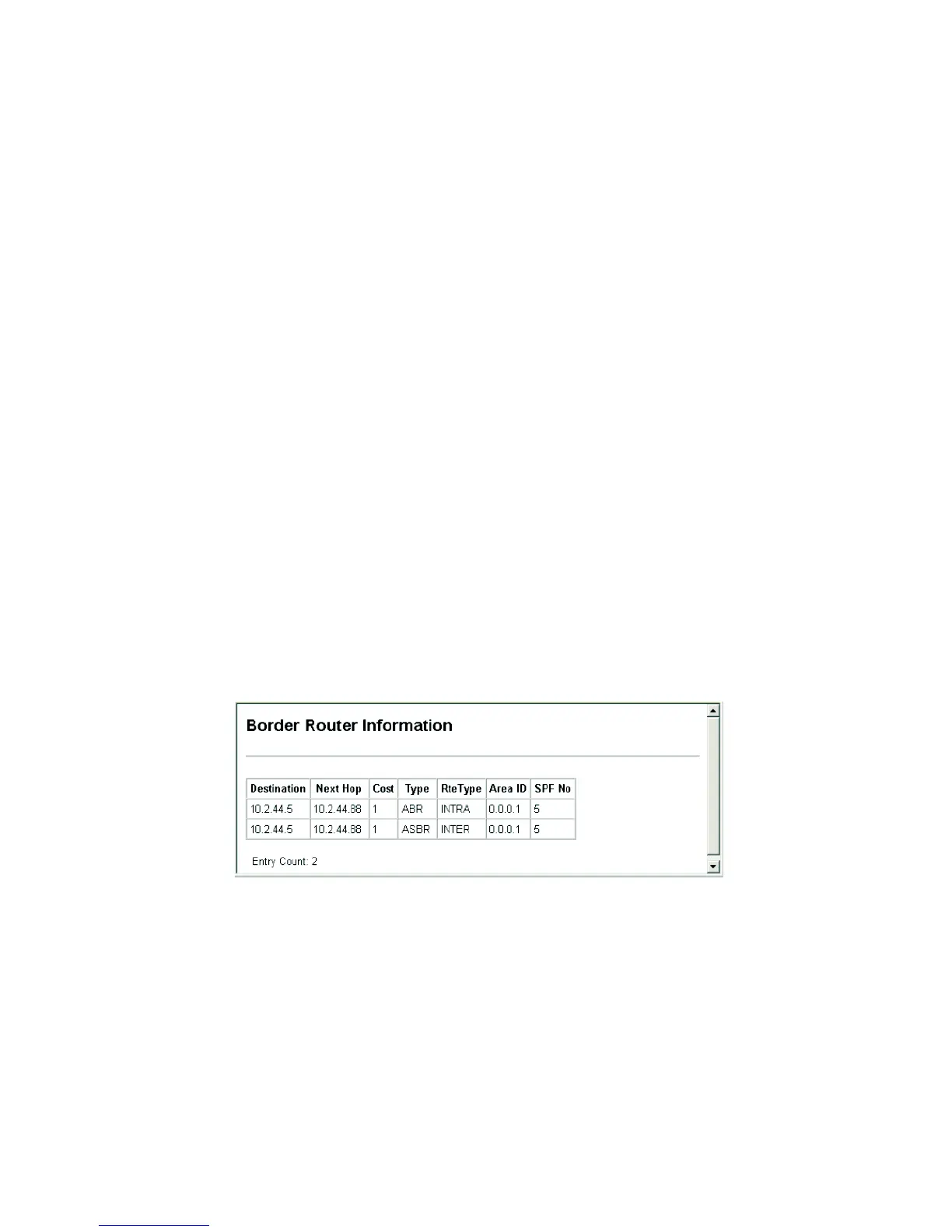 • Type – Router type of the destination; either ABR, ASBR or both.