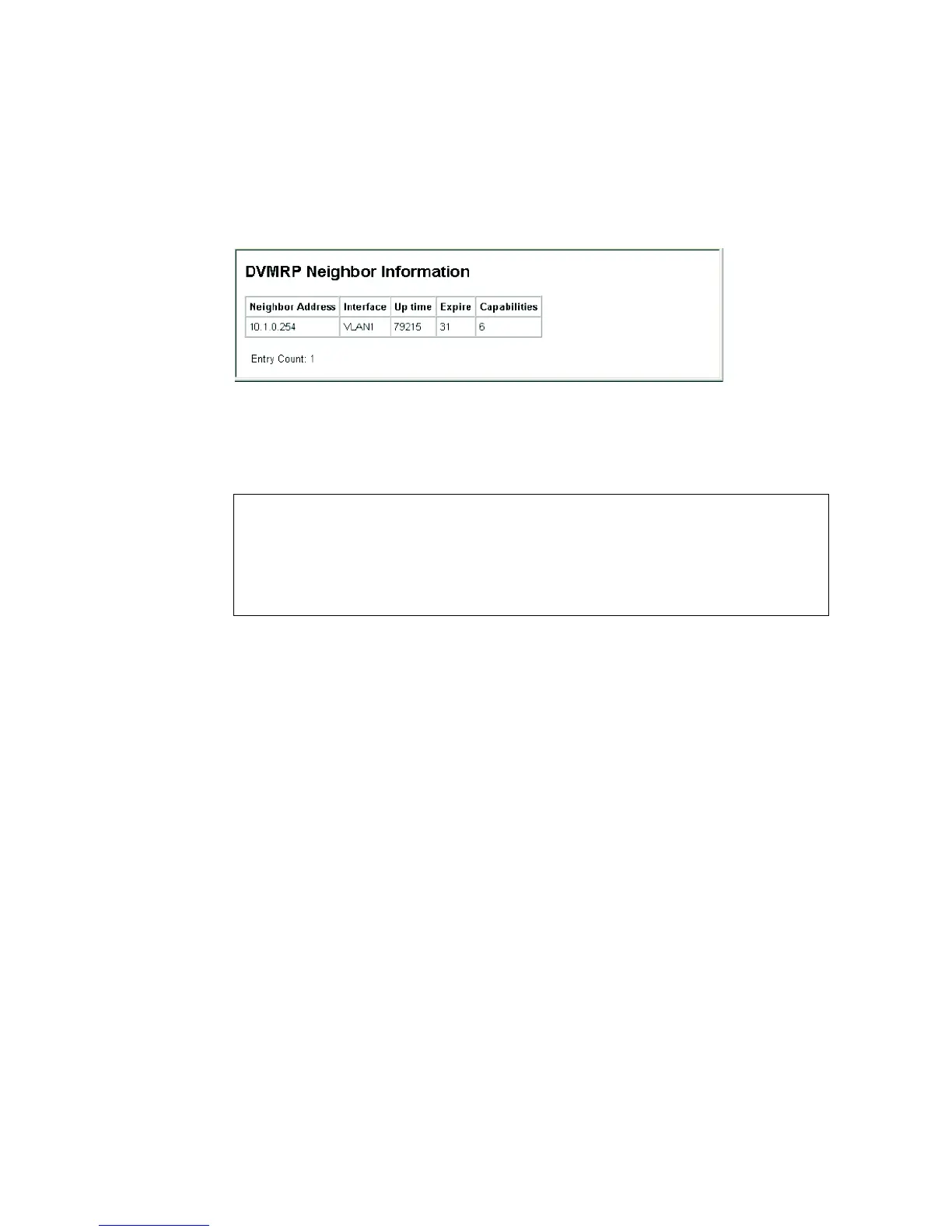 CLI – This example displays the only neighboring DVMRP router.