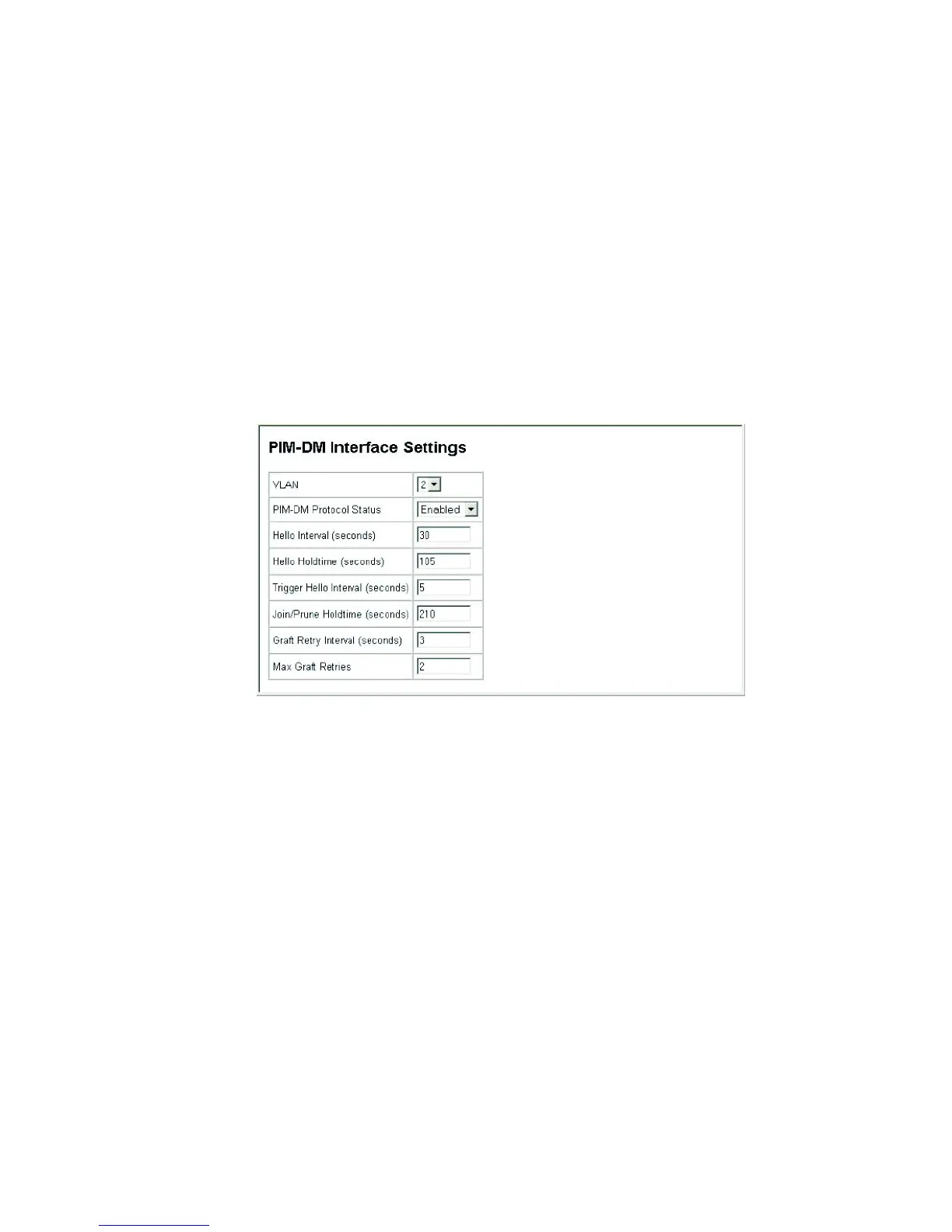 Web – Click Routing Protocol, PIM-DM, Interface Settings. Select a VLAN,
