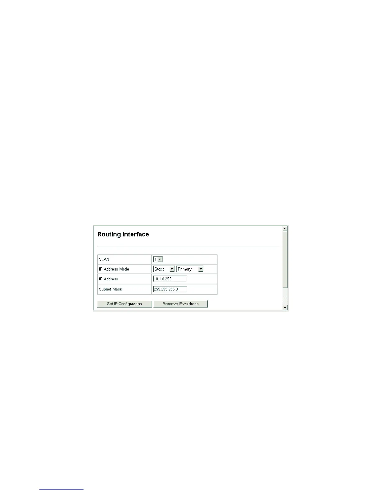 • IP Address – Address of the VLAN to which the management station is