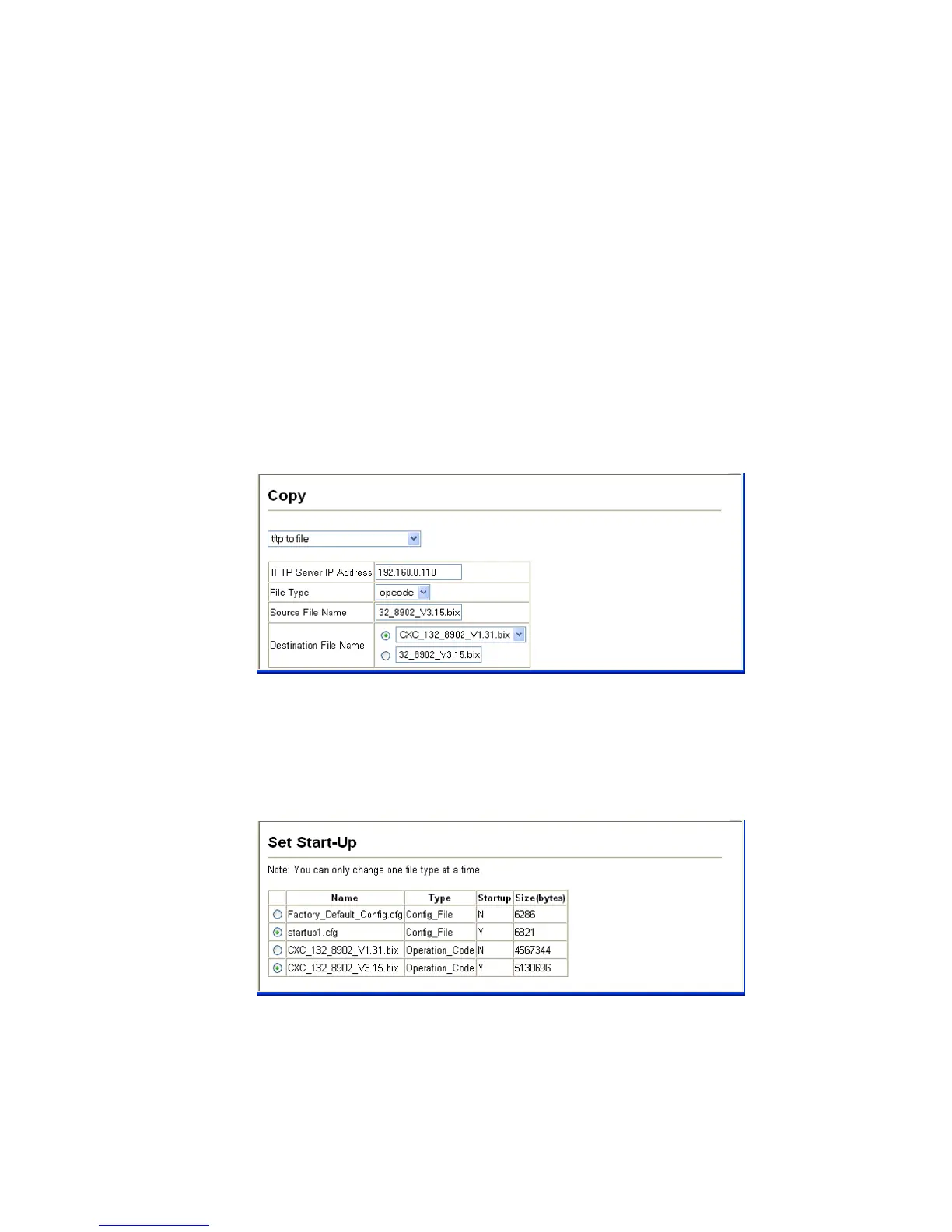 Web – Click System, File Management, Copy Operation. Select “tftp to file” as