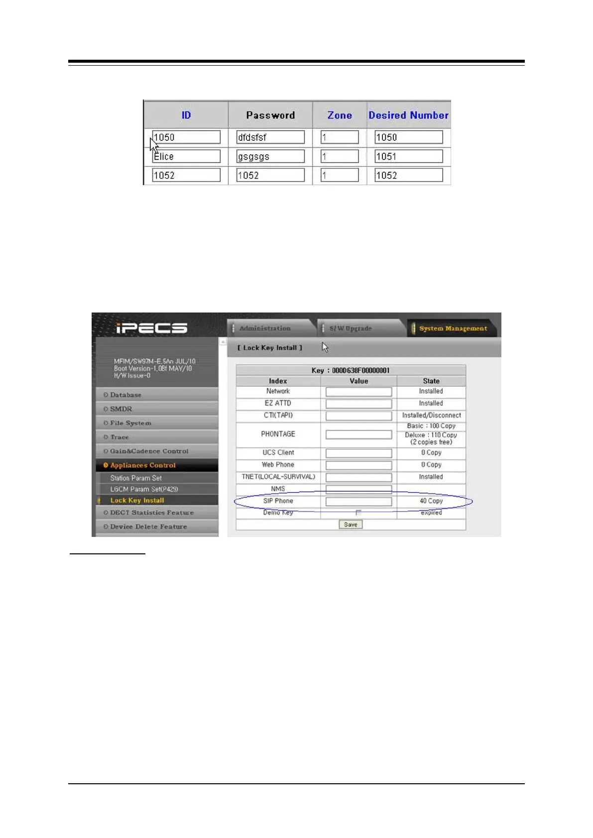 Need Lock Key (Number of SIP Extension Copies) : Other SIP Phones except