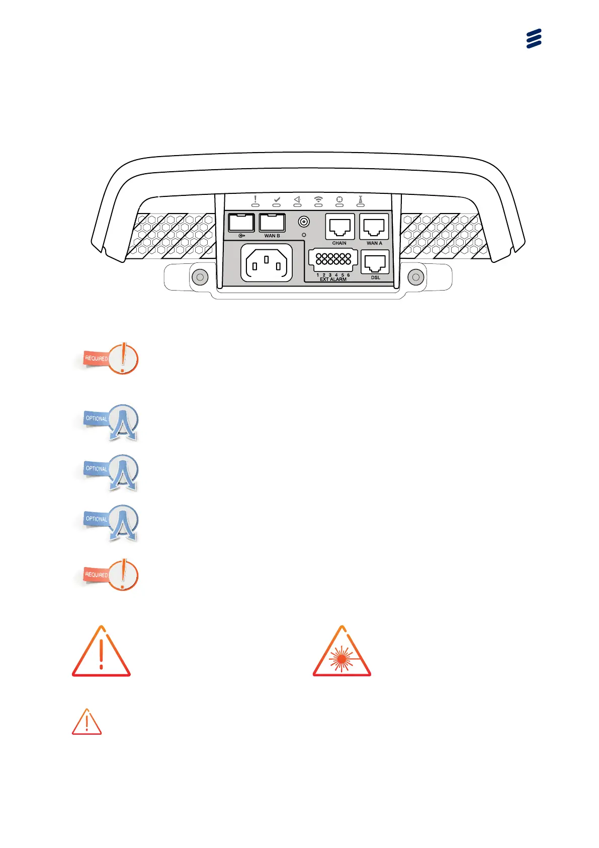 • WAN B – Connect the Ethernet optical cable.