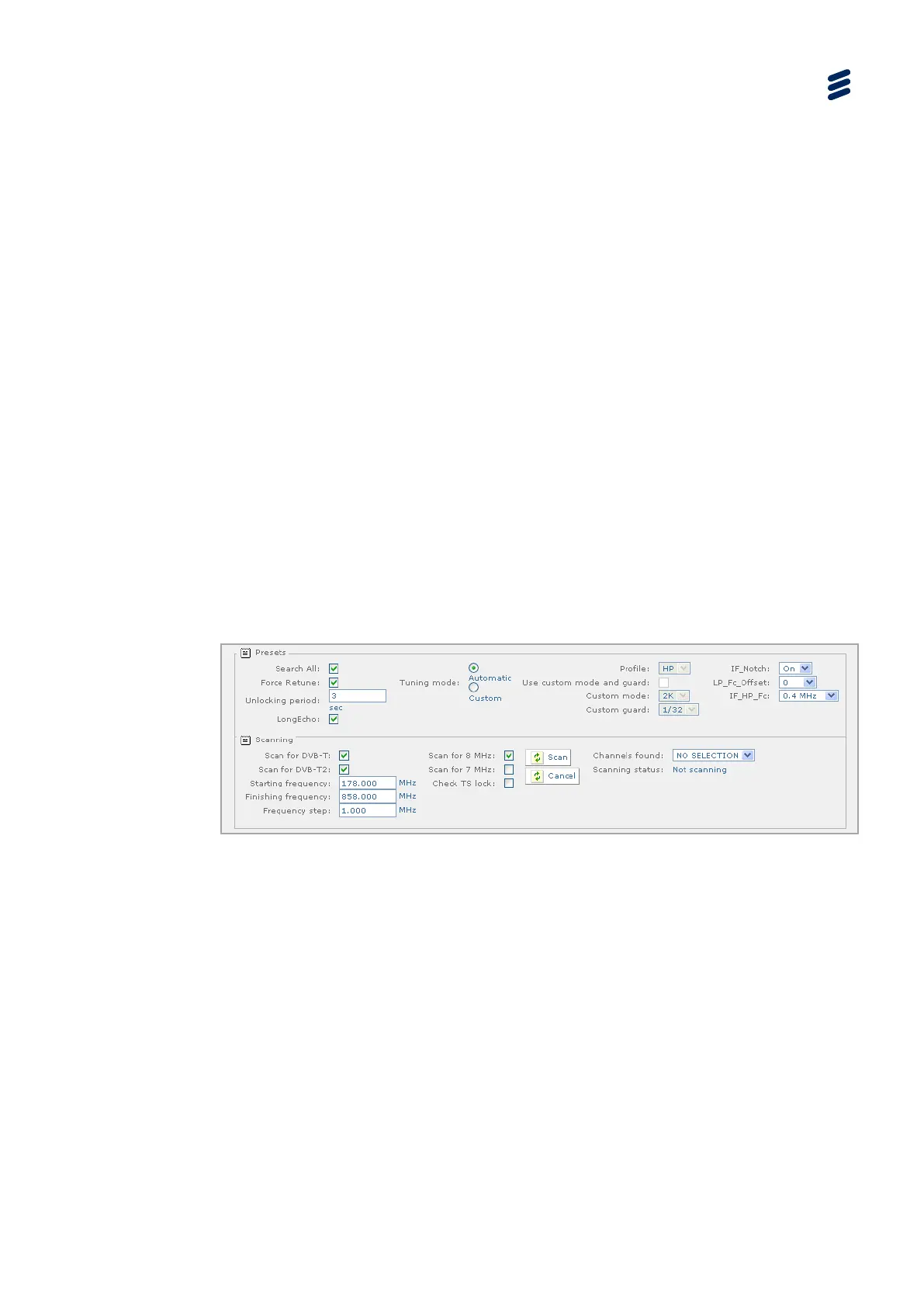Note: After scanning is ended or cancelled, the retune must be triggered either by