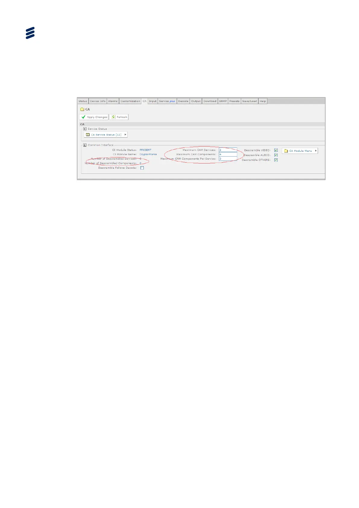 Note: The unit CAM will only descramble these components if the CA system is