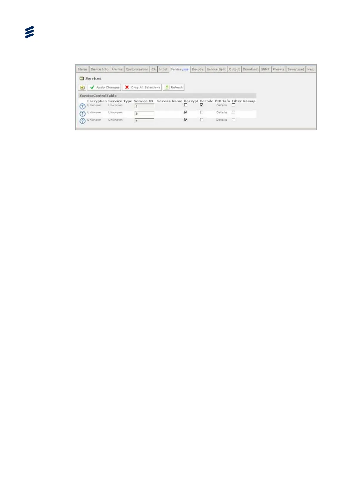 2. Go to the Service plus tab and choose a service to decode by placing a tick in