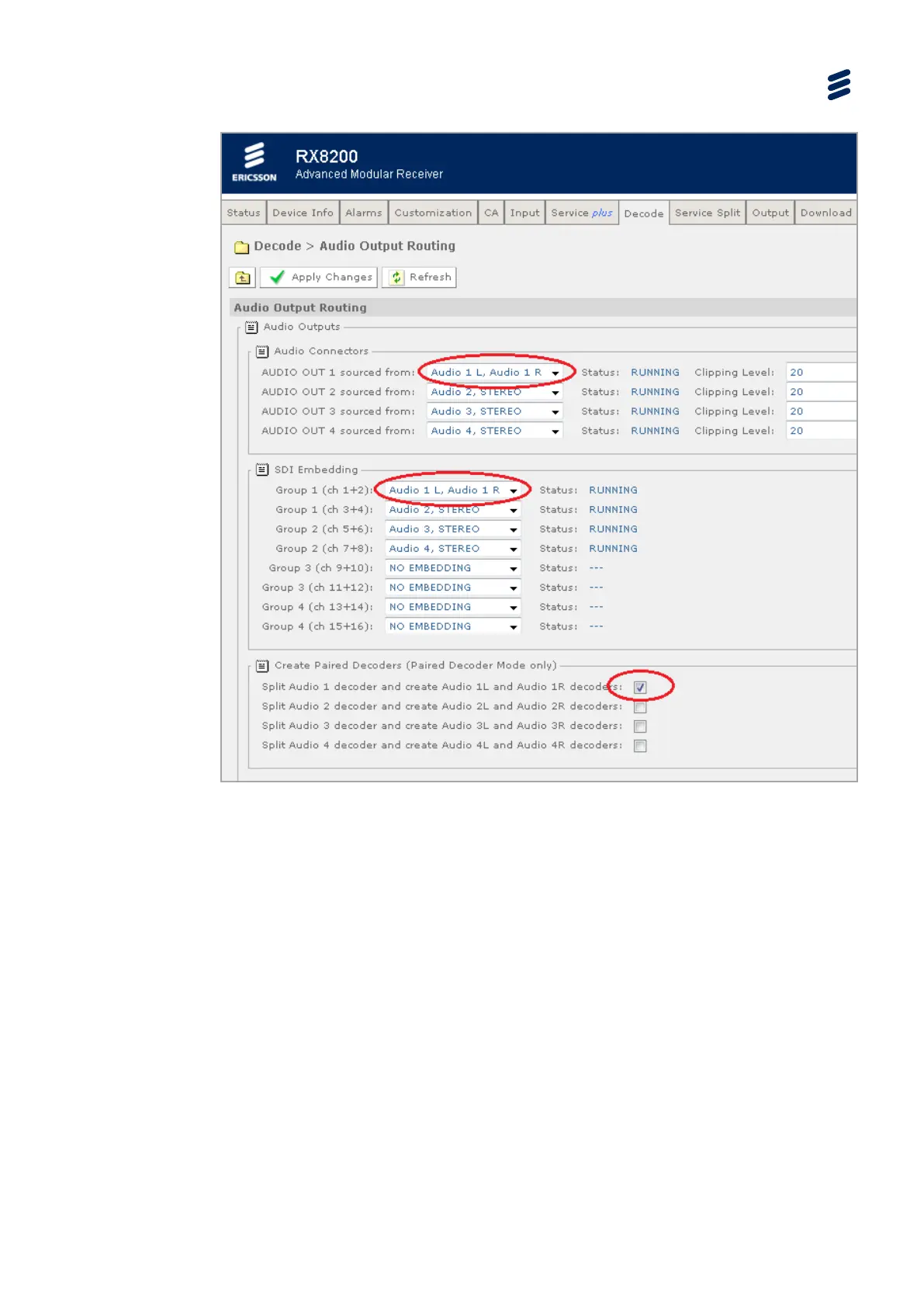 • Split Audio 1 and create paired-decoders Audio 1L and Audio 1R.