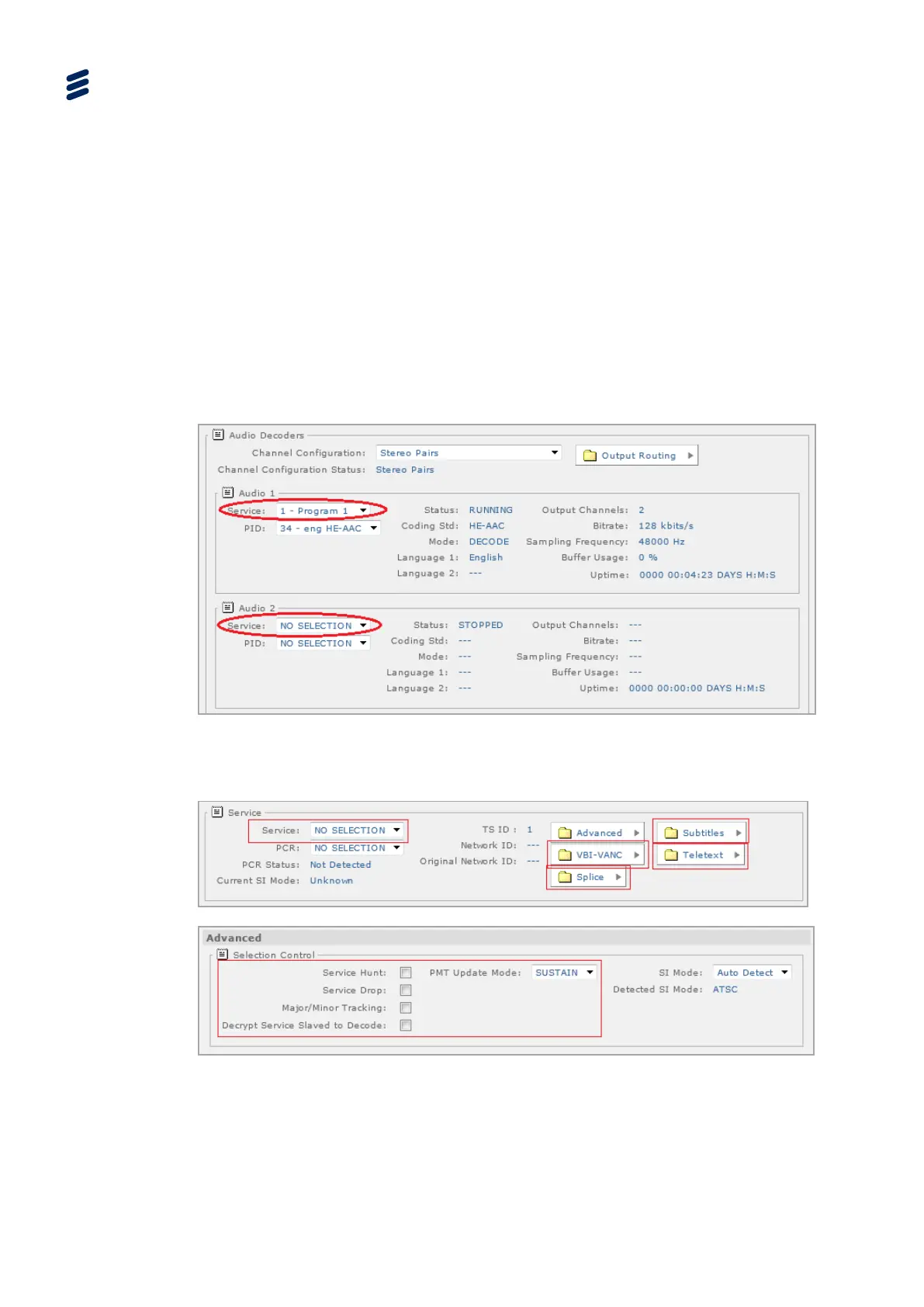 Service ID selection. The number of audio decoders available is dependent on the
