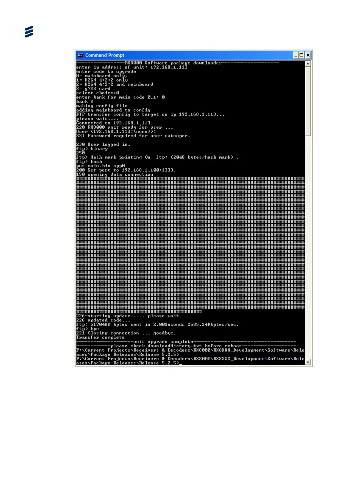 12. The upgrade is complete when the following information is reported in the DOS