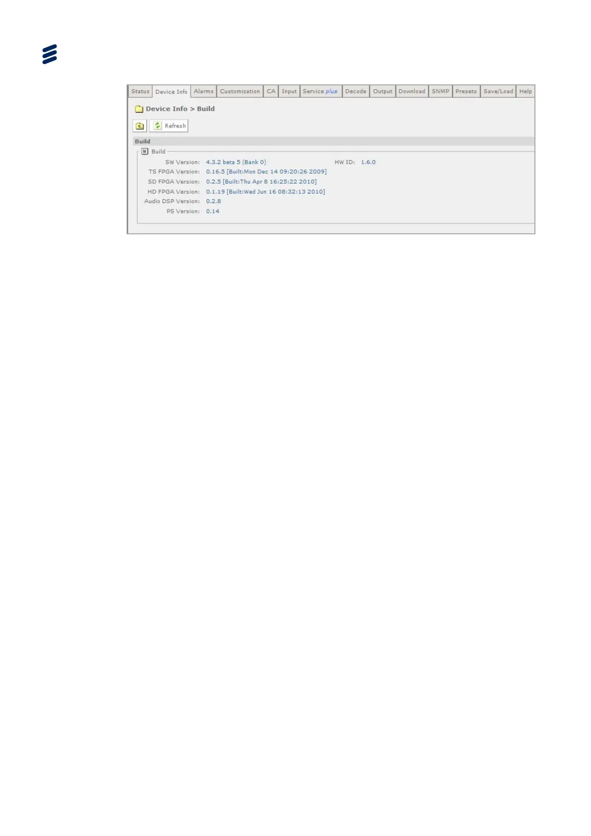 • Audio DSP Version – Displays the version of the audio decoder DSP.