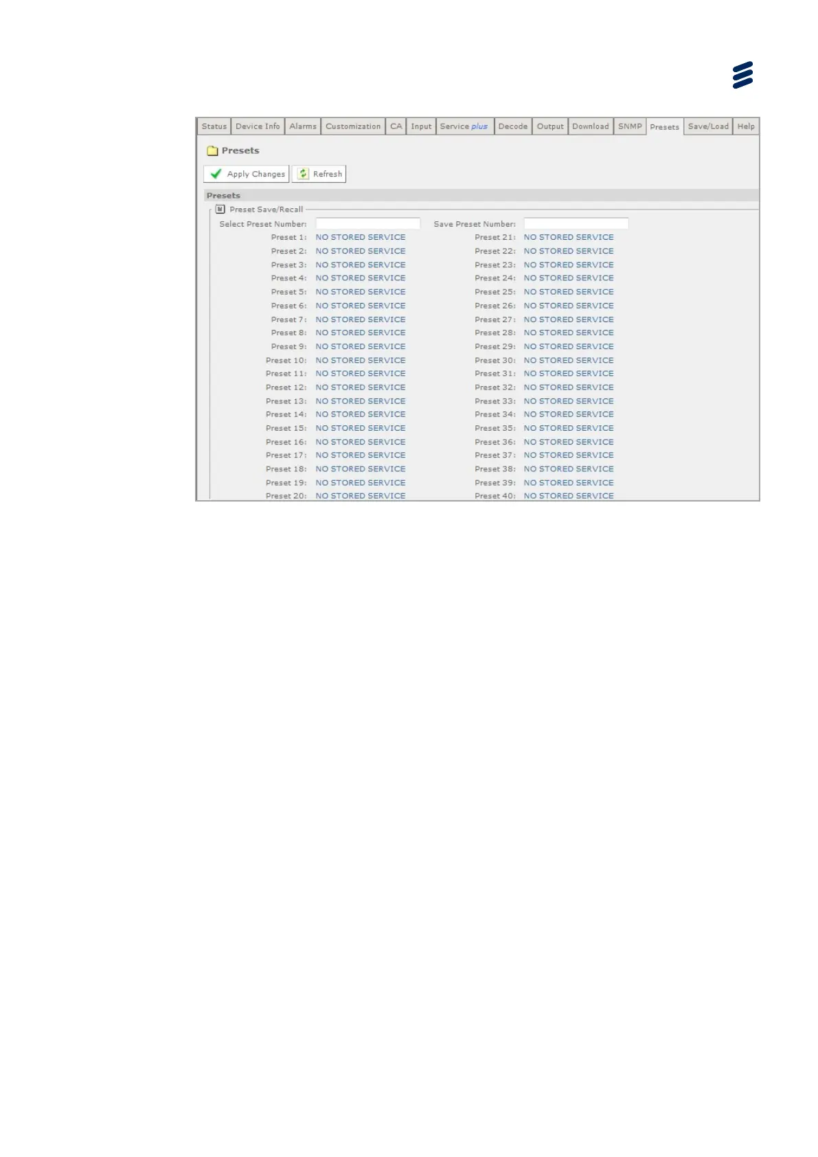 When the preset number is not used, NO STORED SERVICE is displayed.