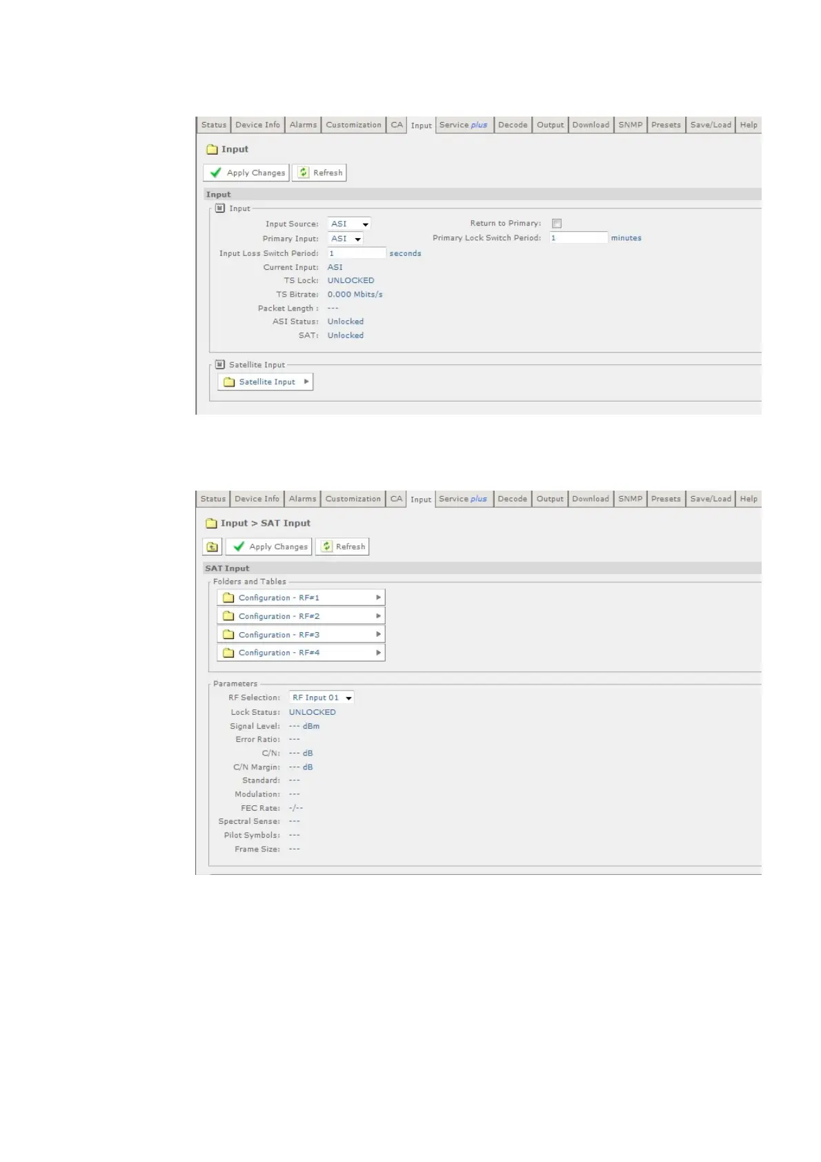 Figure 12 Input Web Page (Satellite Input Card fitted)