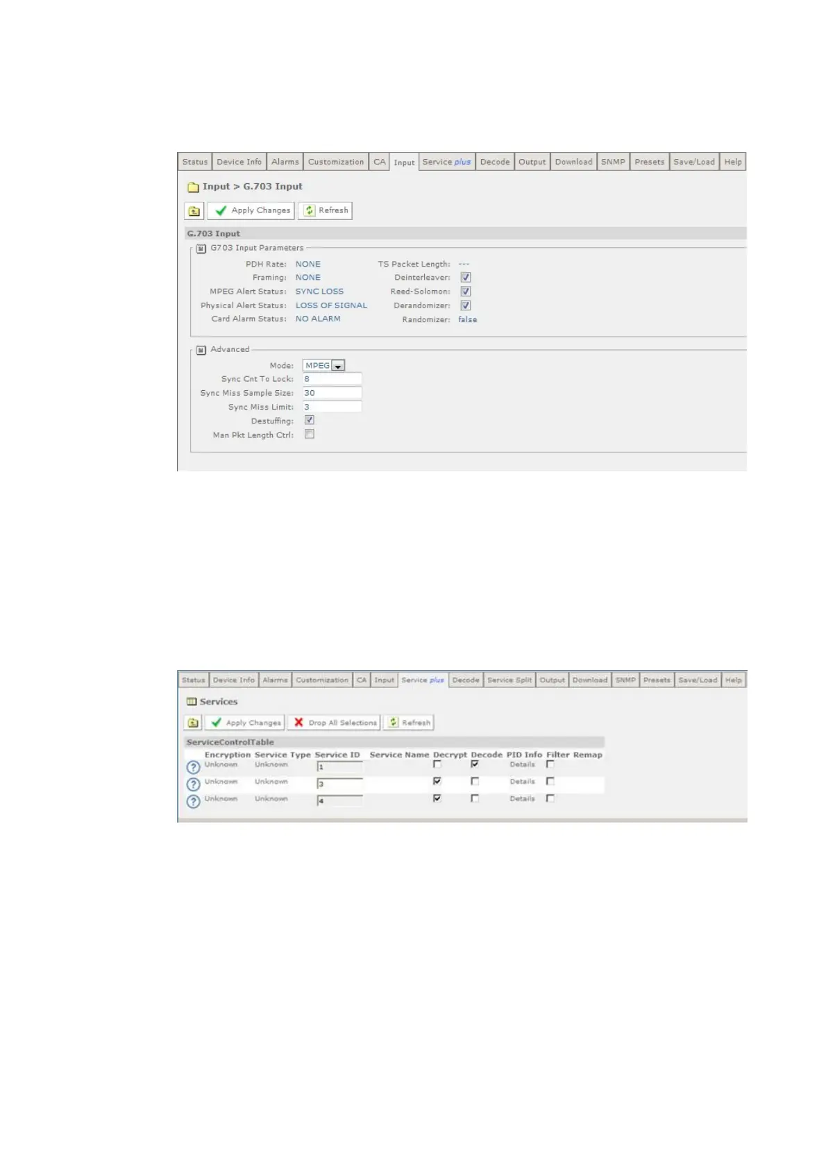 Figure 17 Input > G.703 Input Sub Page (G.703 Input Card fitted)