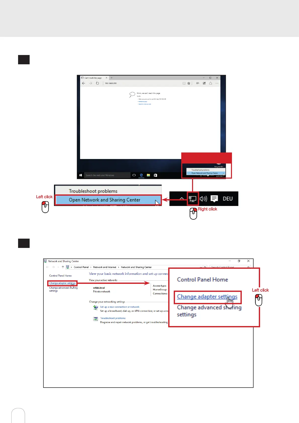 Access to the Network and sharing center