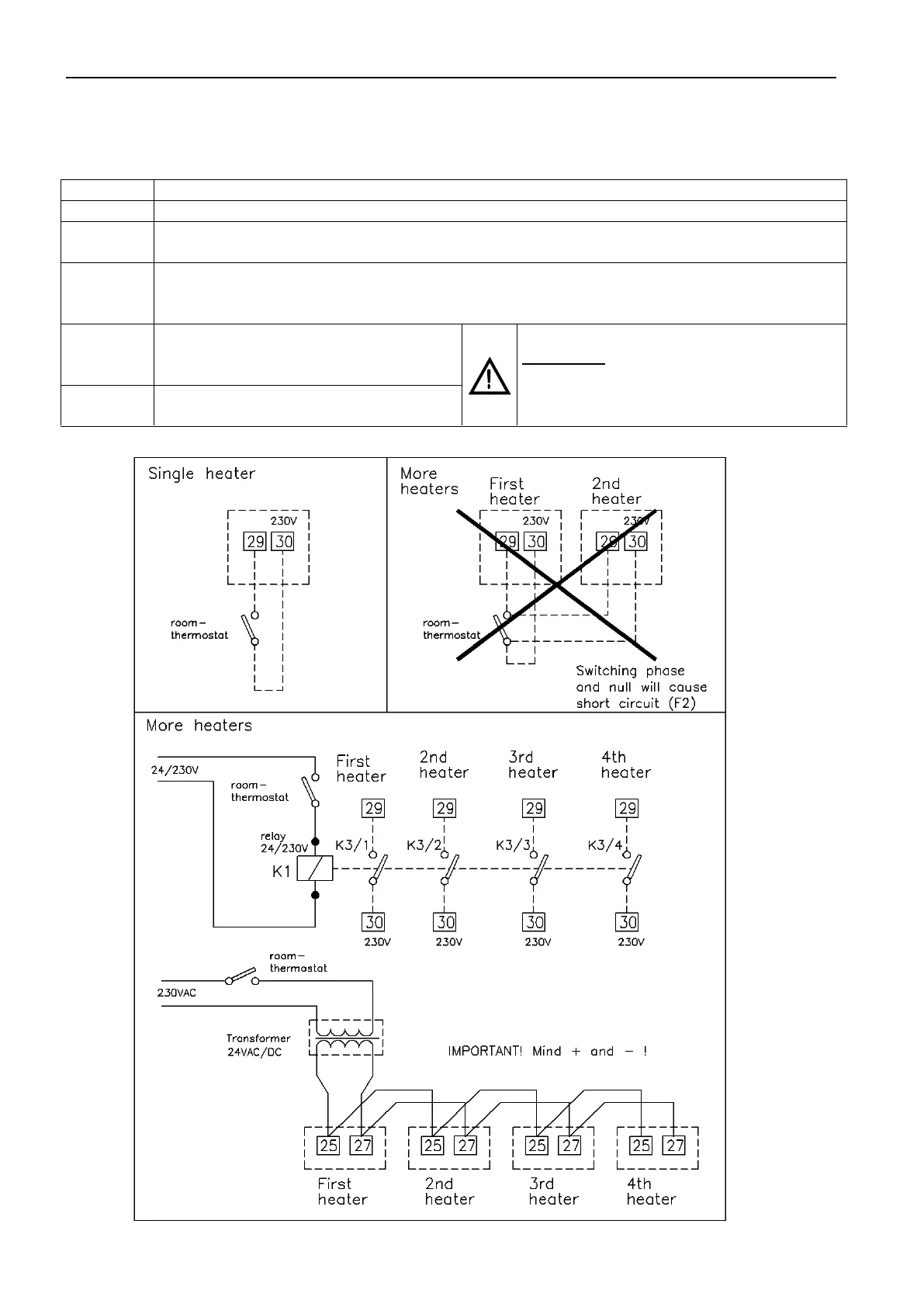 Do NOT connect other heaters on