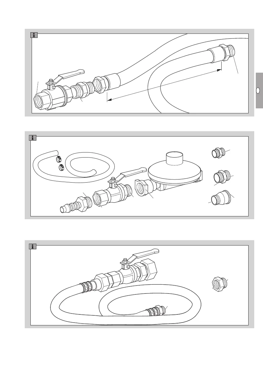Manual valve and gas hose to connect the gas combination controlCG to the gas supply.