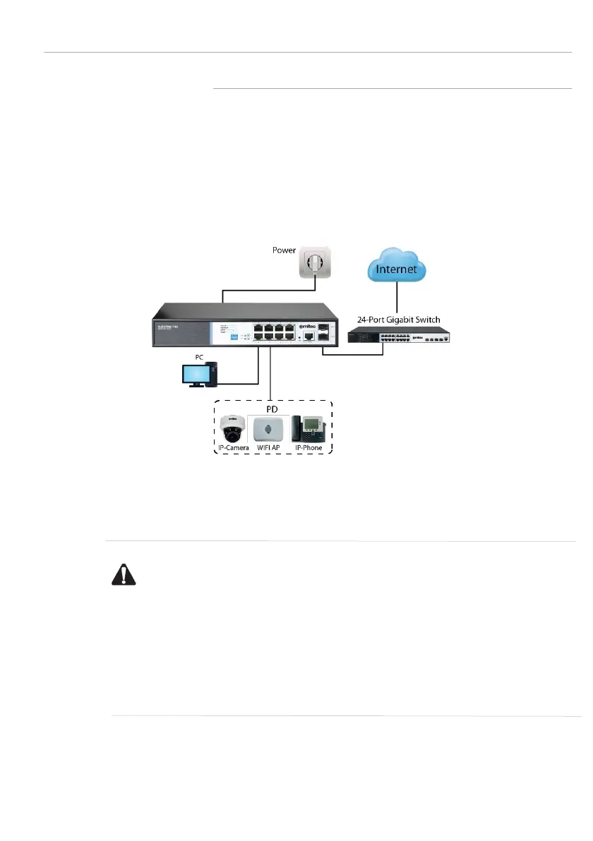 Connect the RJ45 port of the switch and the corresponding network device via cables, the POE