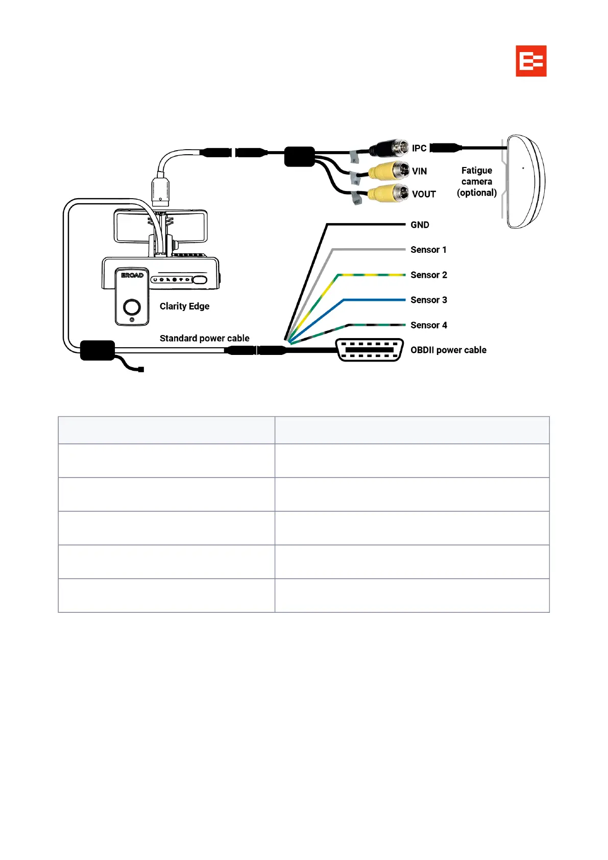 EROAD Clarity Edge - OBDII Power Connection; OBDII Cable Pinouts