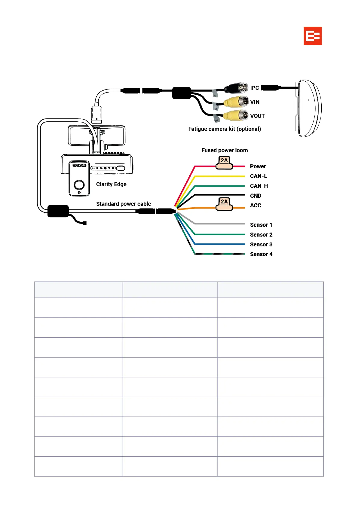 EROAD Clarity Edge - Standard Power Connection; Standard Power Cable Pinouts