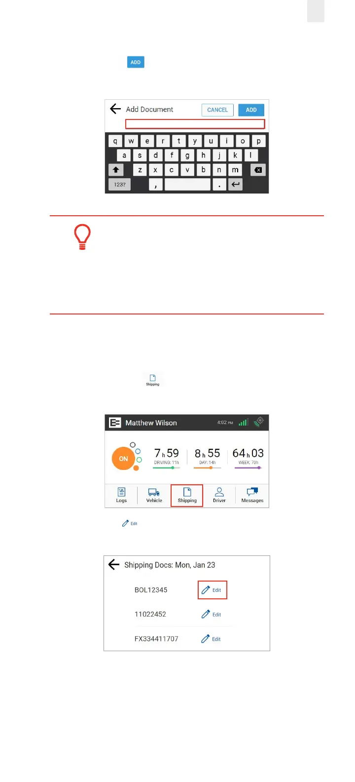 shipping document on a prior day. You can add a