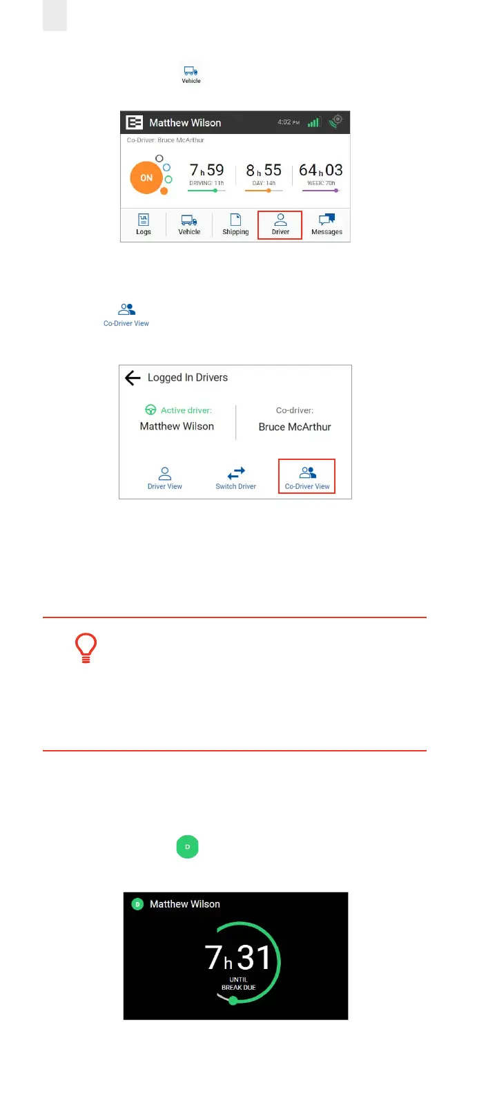 2. The Logged-in Driver screen appears. Tap the Co-Driver