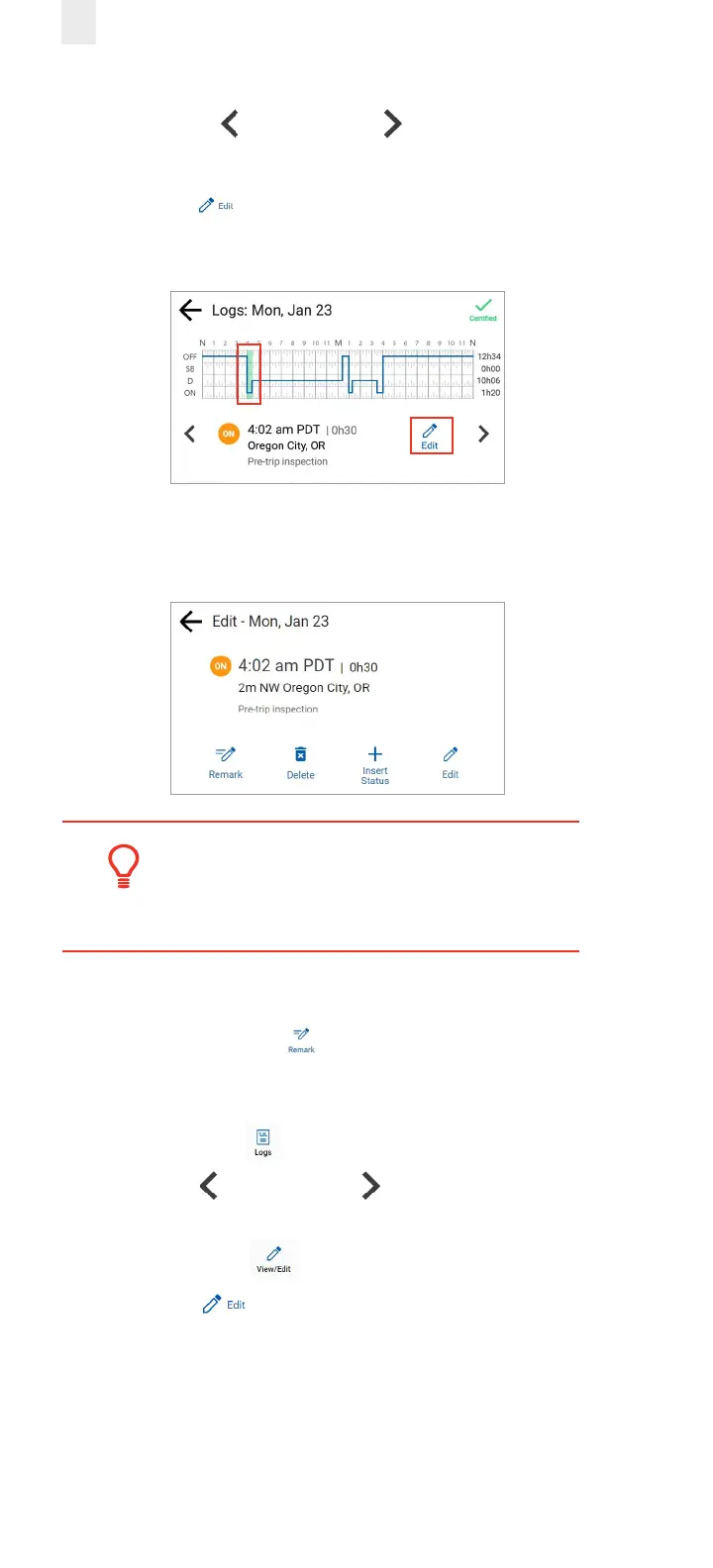3. Tap the Duty Status on the graph that you want to correct,