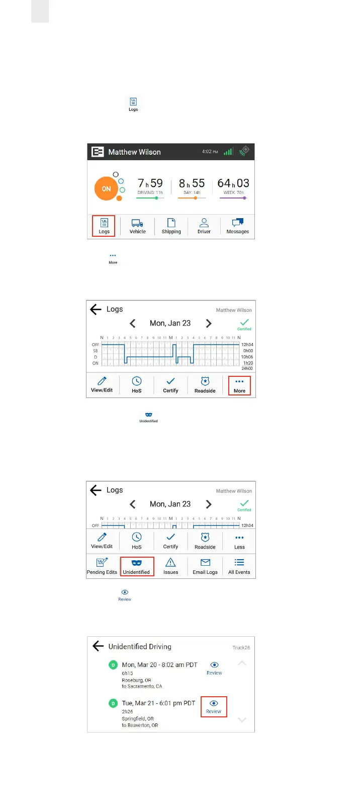 Perform the following steps to claim unidentified driving time