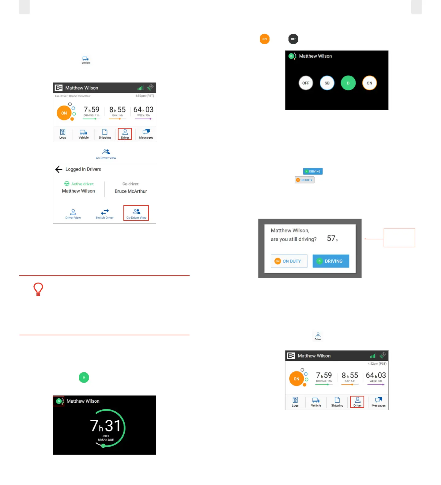 EROAD ELD, when driving with a co-driver. Co-driver login can