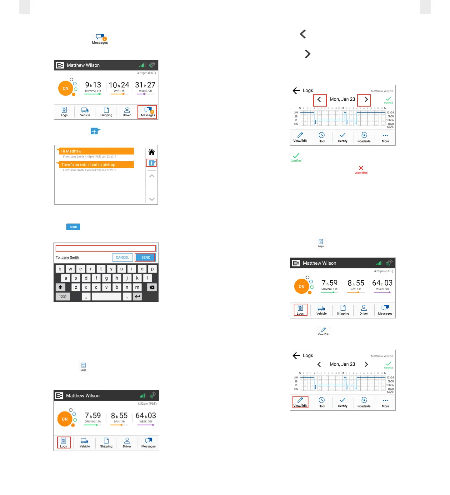 1. Tap the Logs icon on the Home menu. The Logs screen