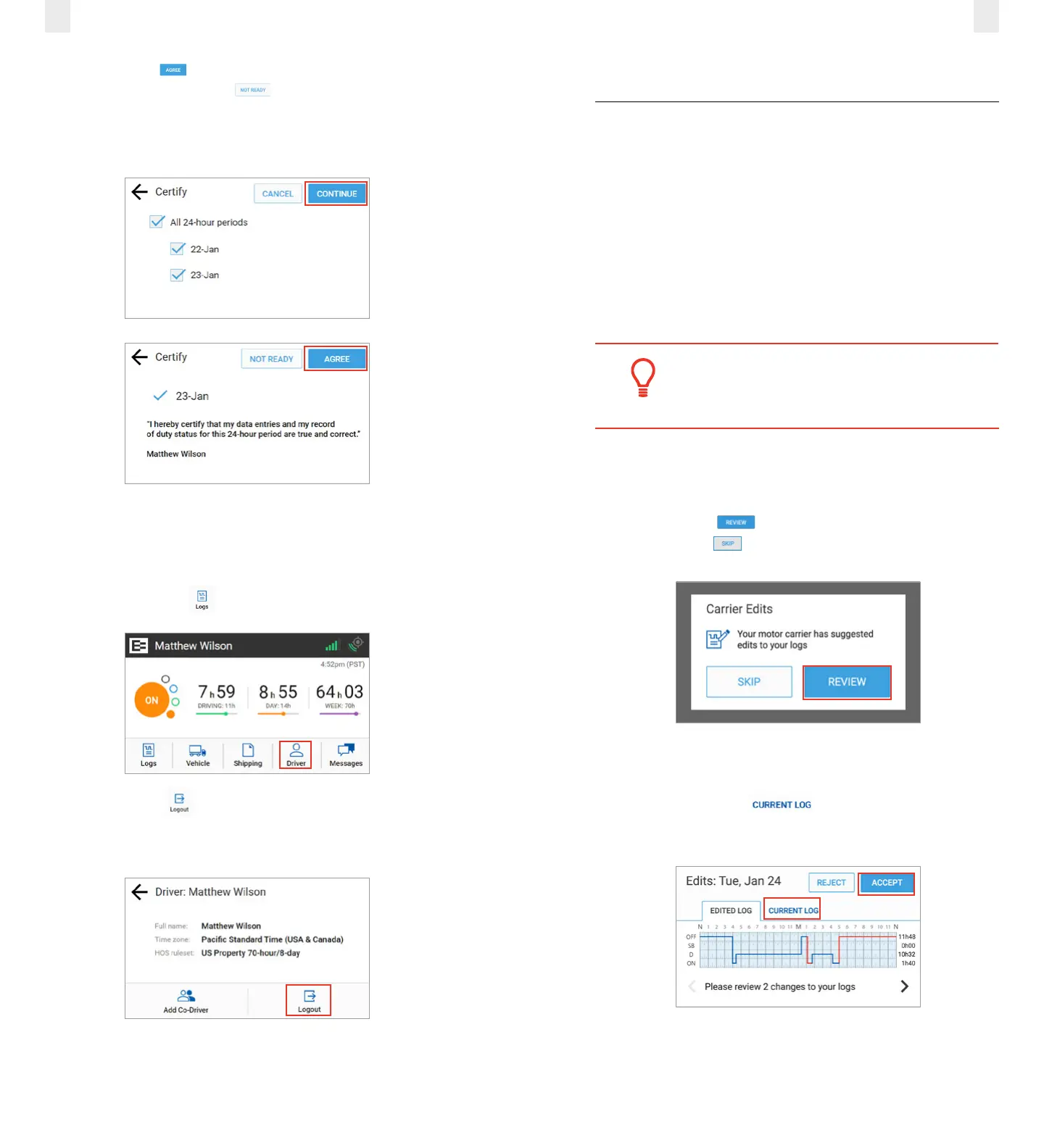 2. Tap the Logout icon. The EROAD ELD prompts you