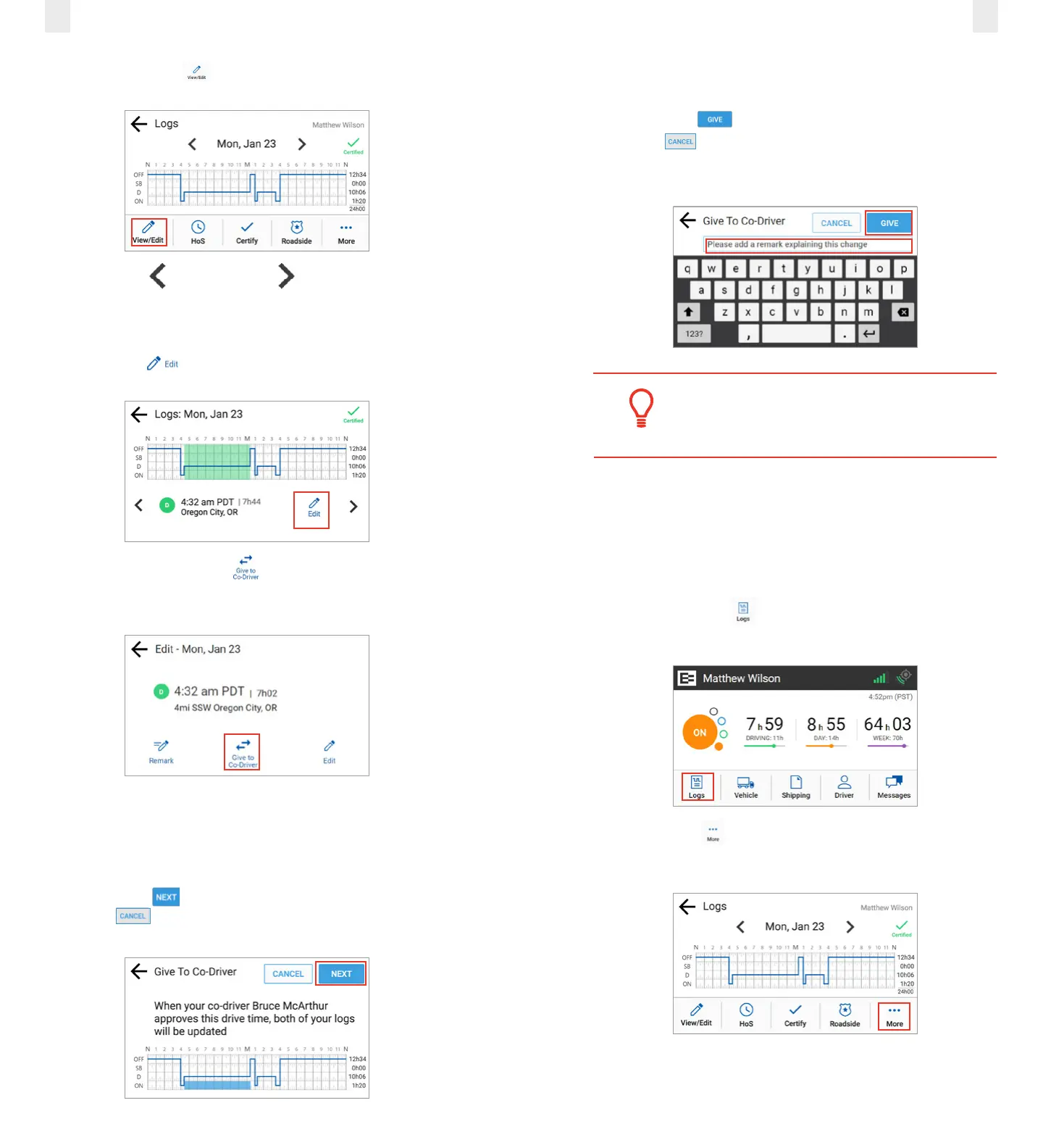 5. Tap the Give to Co-Driver icon. The Give to Co-Driver