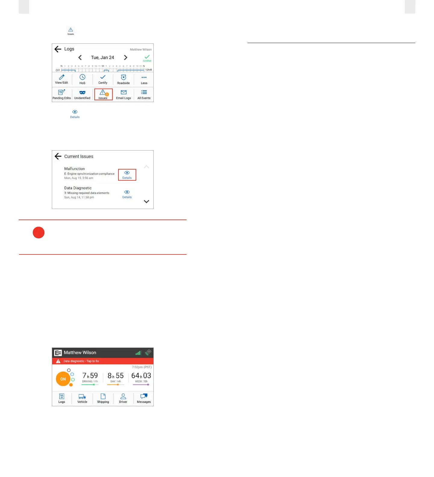 driver’s name if a data diagnostic issue is present. You must