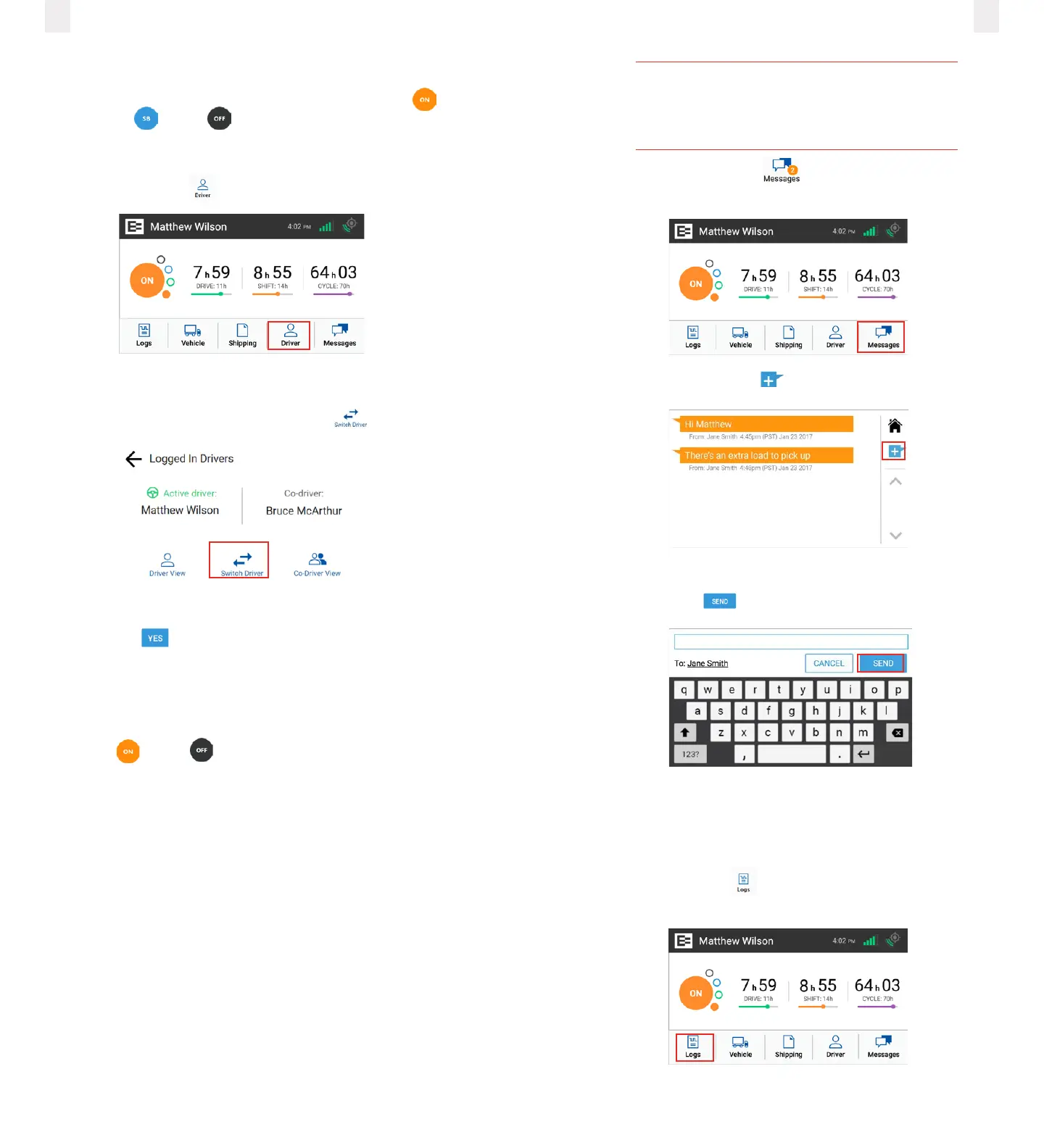 Drivers can view and send messages using the Messages icon