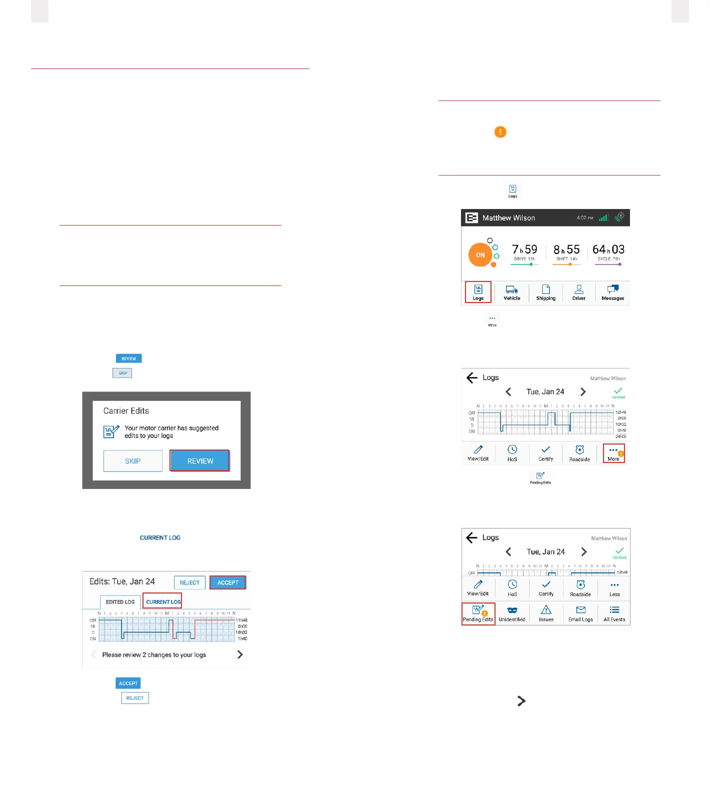 3 Tap the Pending/Edits icon on the Logs screen. The