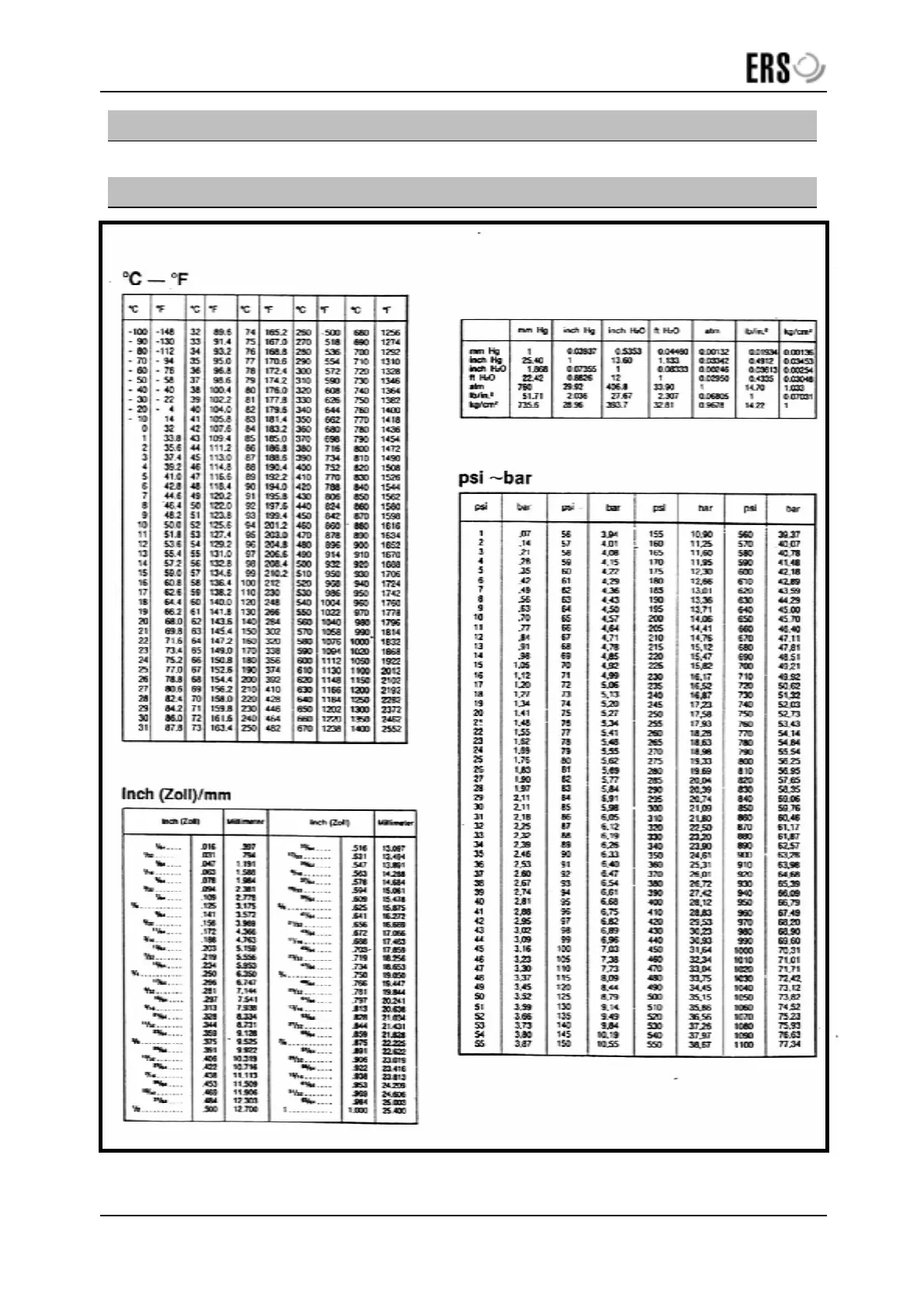 ERS AirCool plus - Conversion Tables; Conversion Tables International