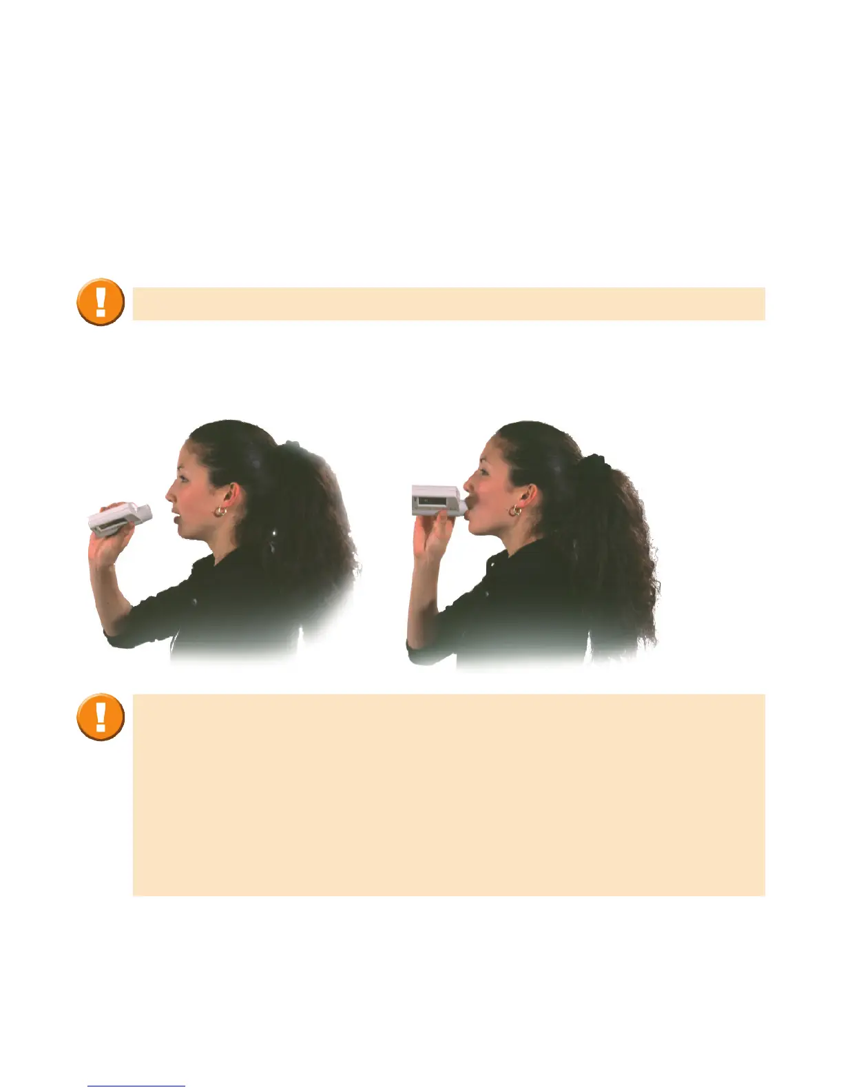 1. Inhale deeply and hold your breath until you have positioned the inlet of the
