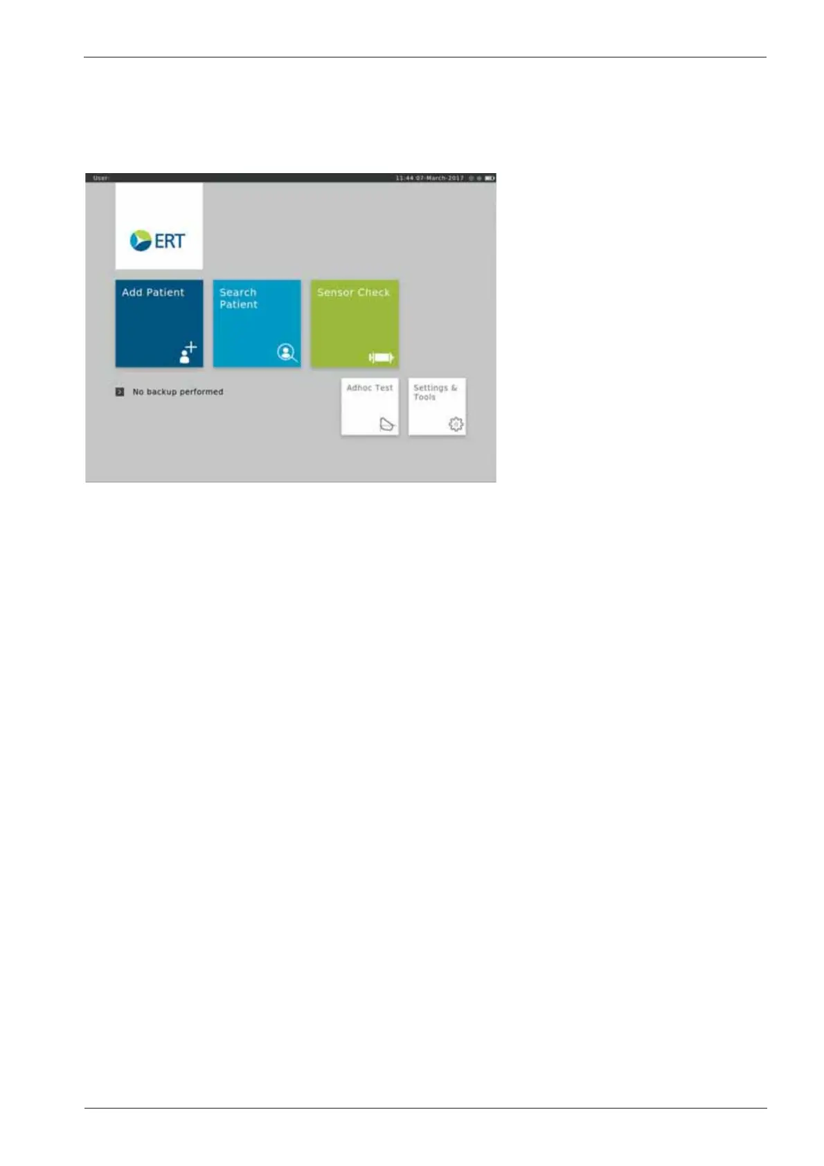 Here, you can select the submenus "Add Patient", "Search Patient", "Sensor Check", "Adhoc