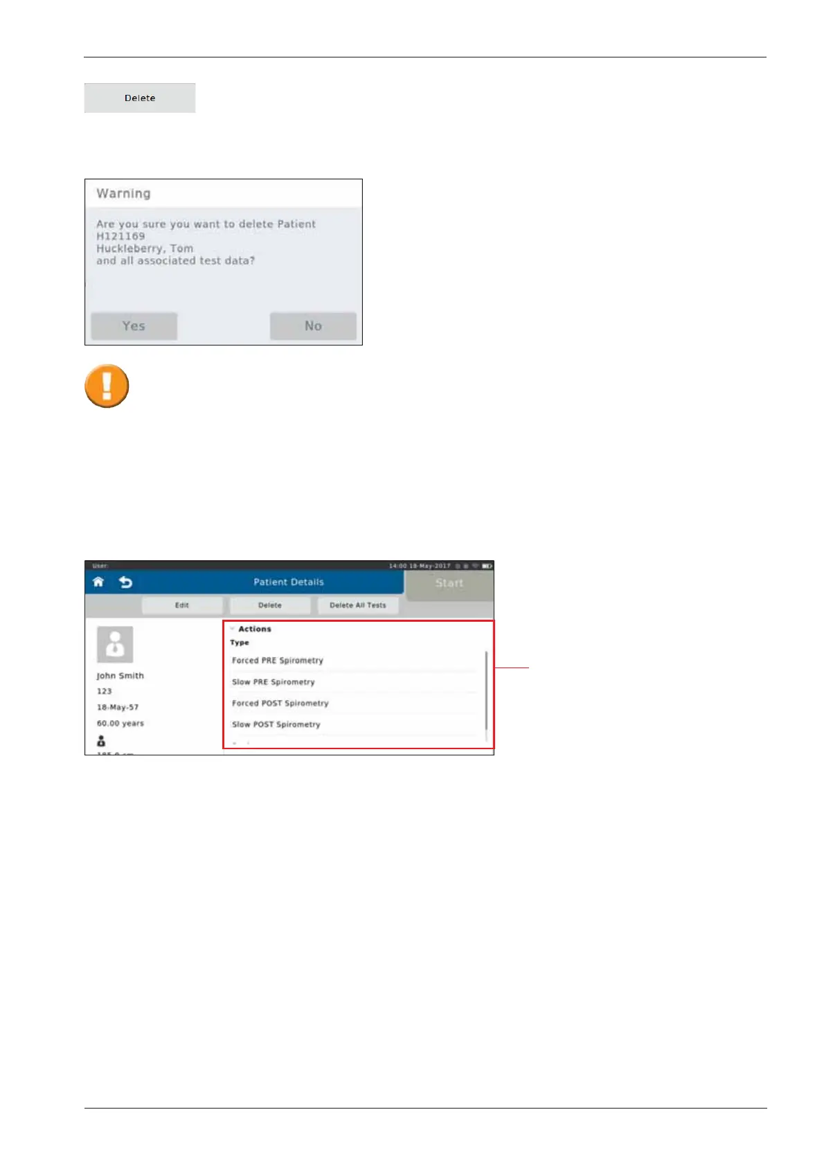Tapping on "Yes" will irrevocably delete the selected patient including all saved