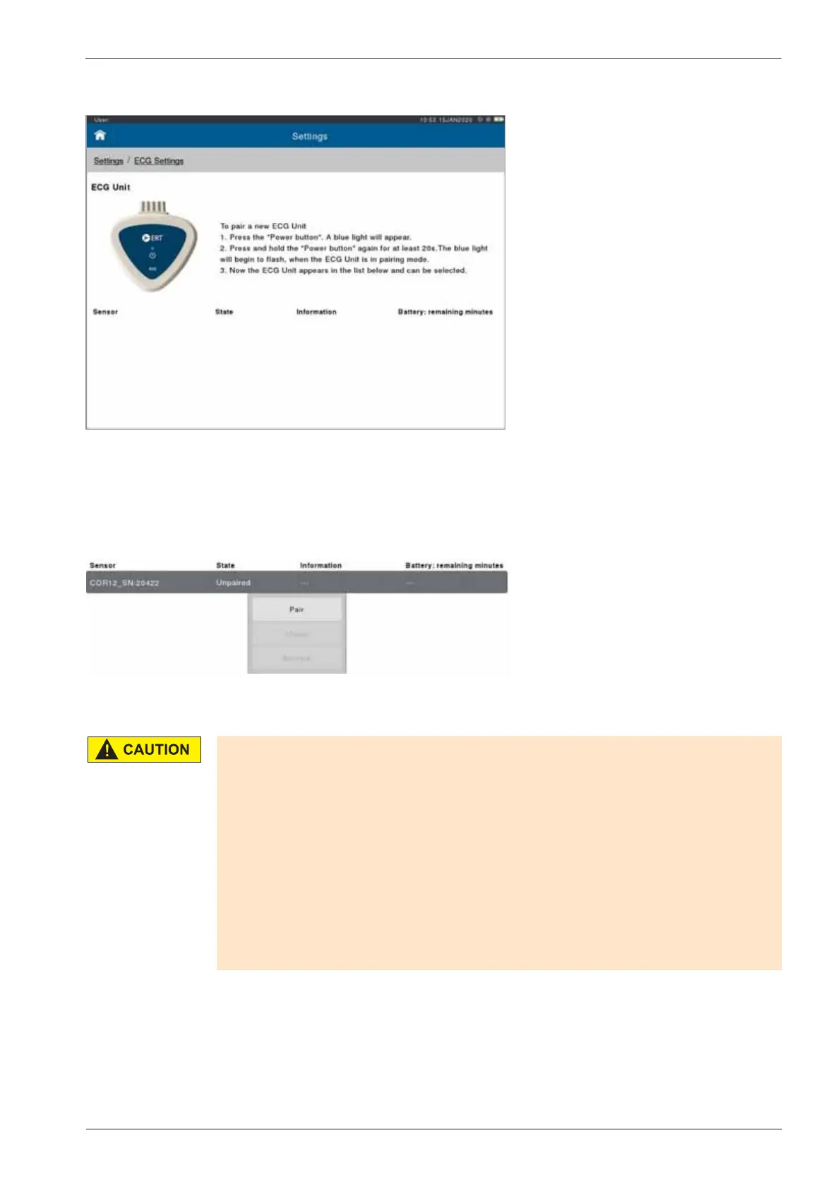 Select “ECG Unit connection” from the ECG Settings menu.
