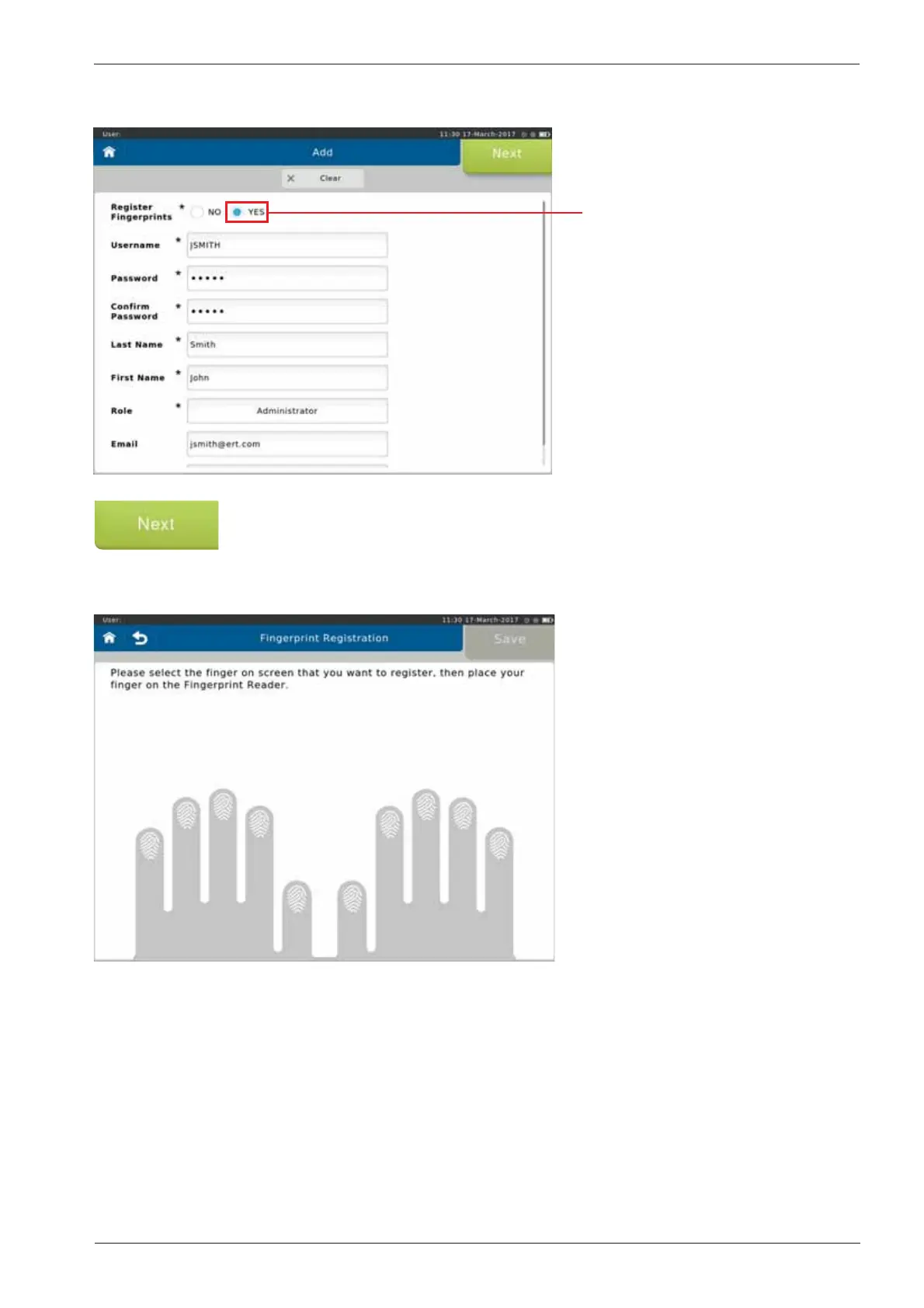 Tap <Next> to move to the ngerprint registration.