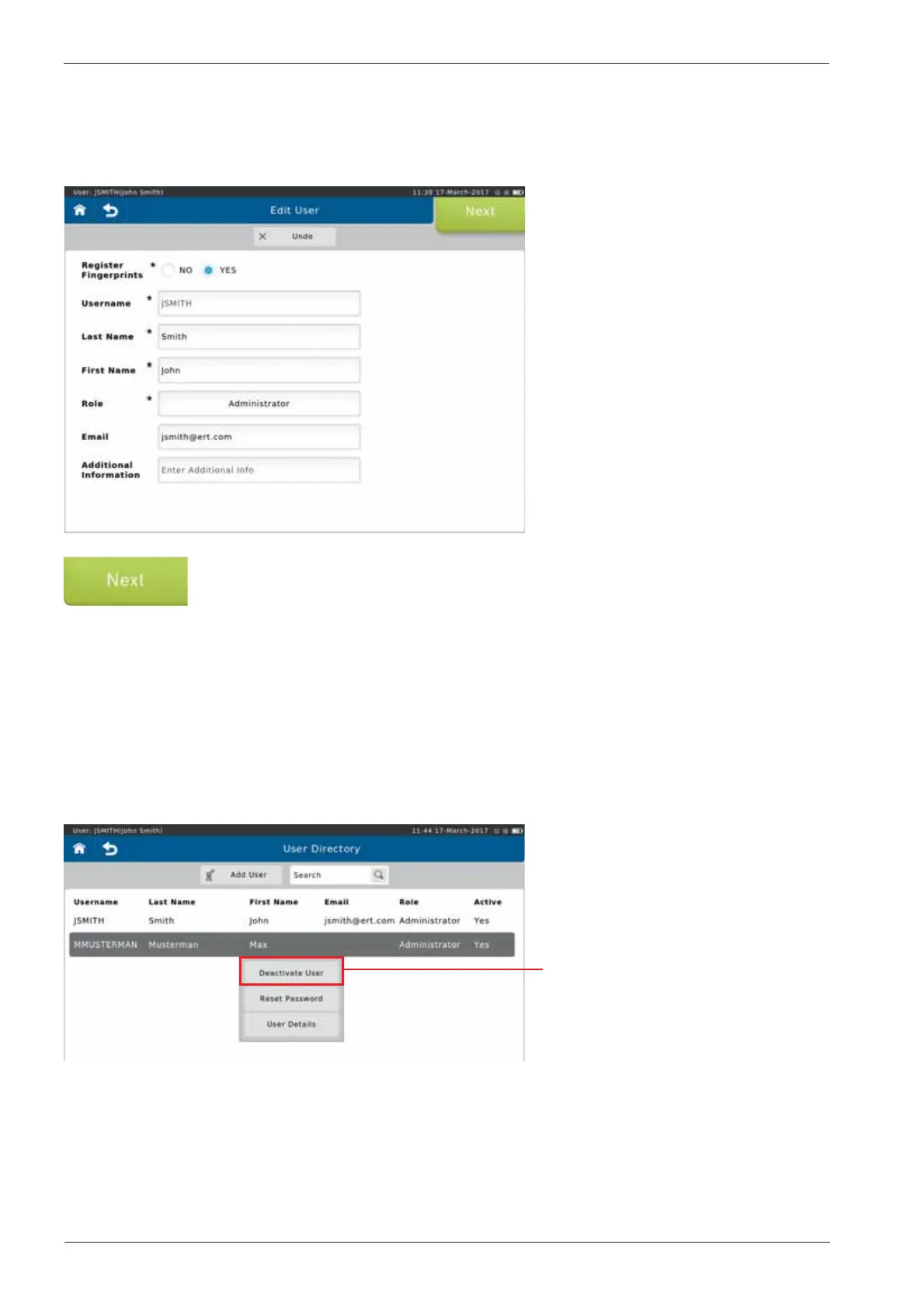 An Administrator is able to activate/ deactivate a user and to reset the password (with a temporary
