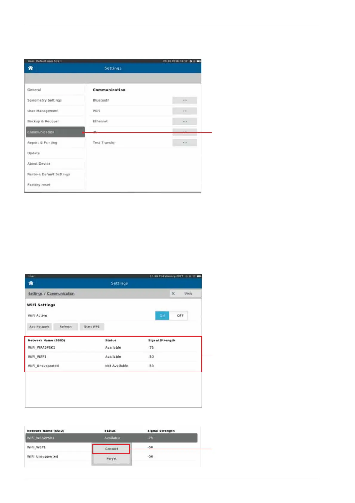 It is possible to congure the Communication settings from the Communication menu within