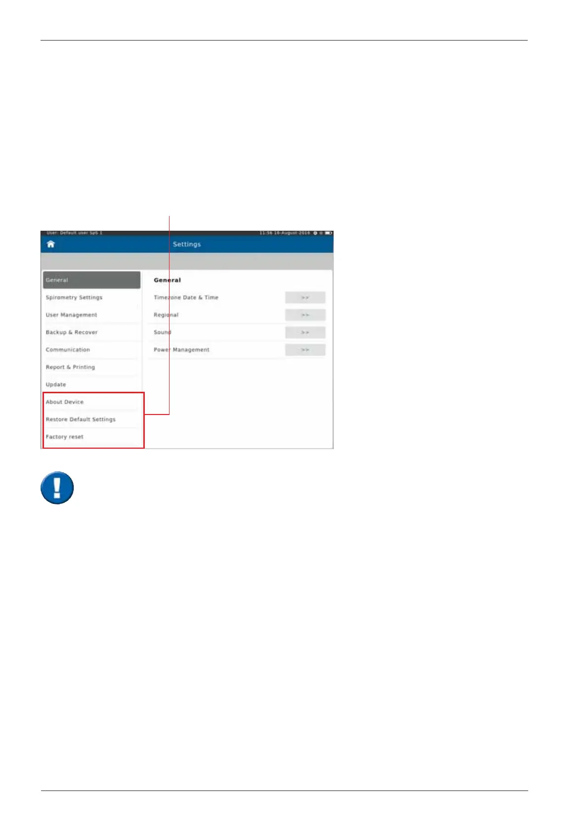 ERT SpiroSphere - About Device; Restore Default Settings; Factory Reset