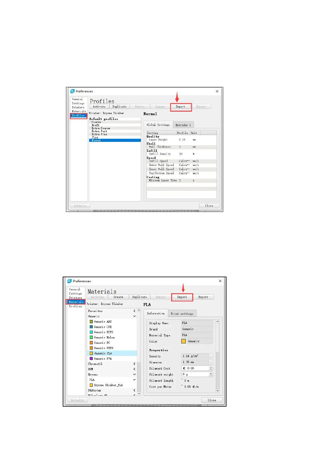 Eryone Thinker S - Importing Printer Profiles; Importing Filament Material Profiles