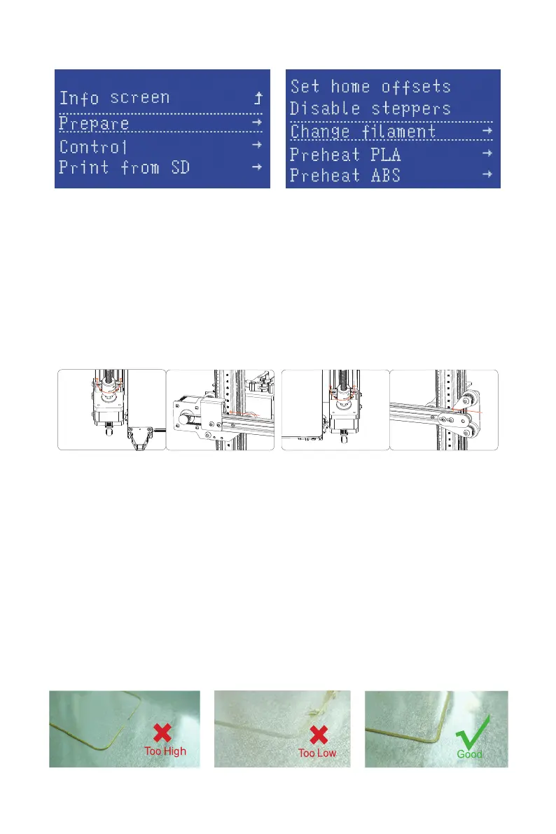 Before you levelling the heated bed, please make sure gantry frame is perpen-
