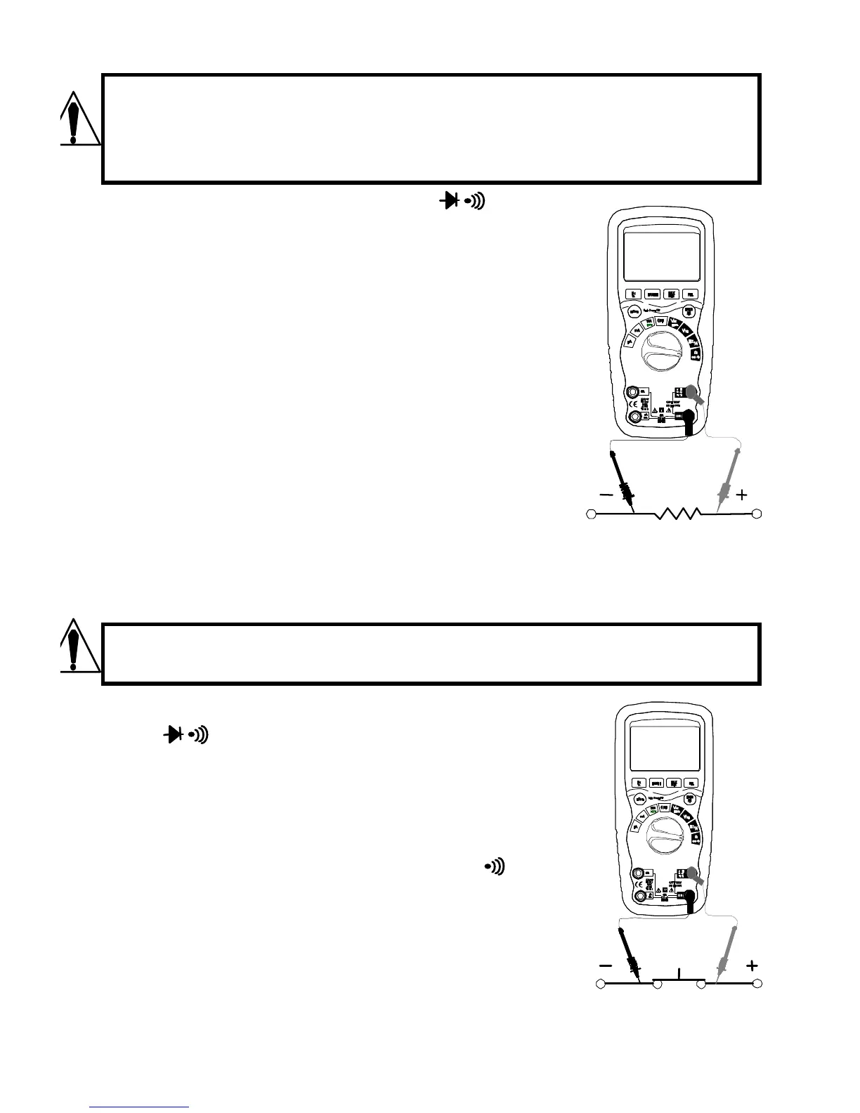 WARNING: To avoid electric shock, never measure continuity on