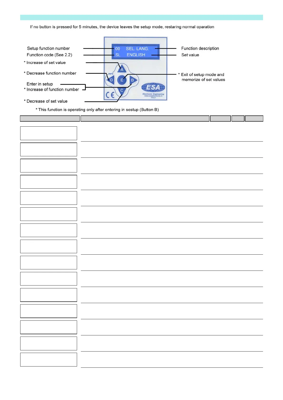 Interval time between ev. from 1 to 999 sec. 001÷999 B3x 5 sec.