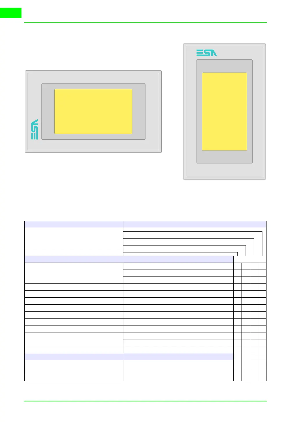 The following table lists the principal technical characteristics of the prod-