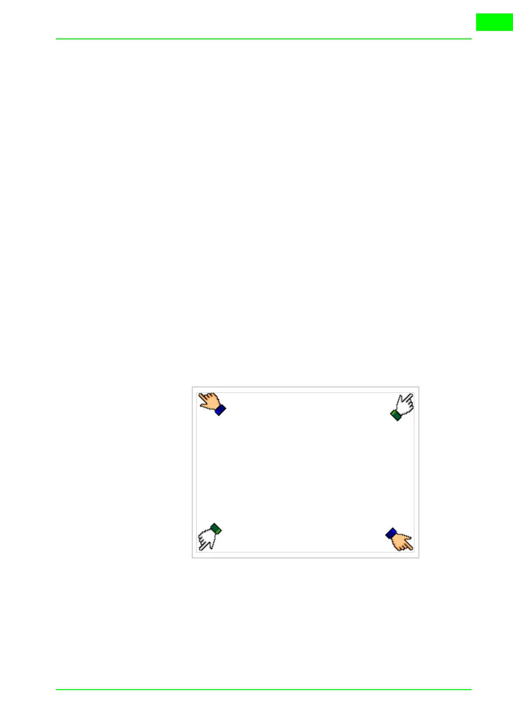 • Press one after the other the diagonally opposite corners free of settable